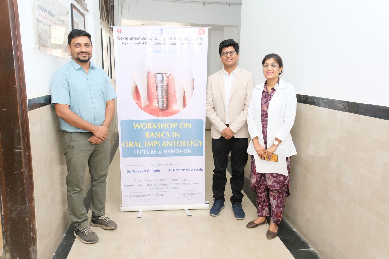1 day CDE program conducted on 7 th March 2025 on Basics in Oral Implantology with MSDC appointed moderator Dr Hemraj Wani. The speakers were Dr Radhika Chheda and Dr Dhanashree Yeole . It was attended by all the postgraduate students of Prosthodontics, Periodontics and Oral Surgery along with the staff of GDC Mumbai