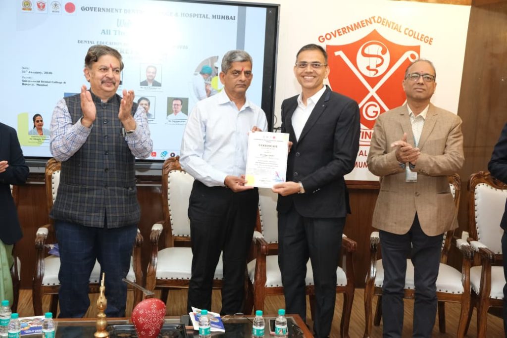 ”Dr. Vilas Takate, Associate Professor in the Department of Pediatric Dentistry at the Government Dental College and Hospital (GDC), Mumbai, recently successfully completed the ‘Tata Mumbai Marathon 2026’. For this achievement, he was felicitated on the occasion of the ‘DENTREPRENEUR’ Dental Education Research Summit III 2026.”