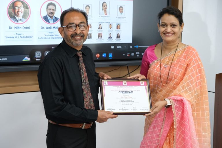 The programme was conducted under the guidance of the Head of the Department of Periodontology, Dr. Akshaya Banodkar, and with the constant support and encouragement of the Dean, Dr. Dimple Padawe.